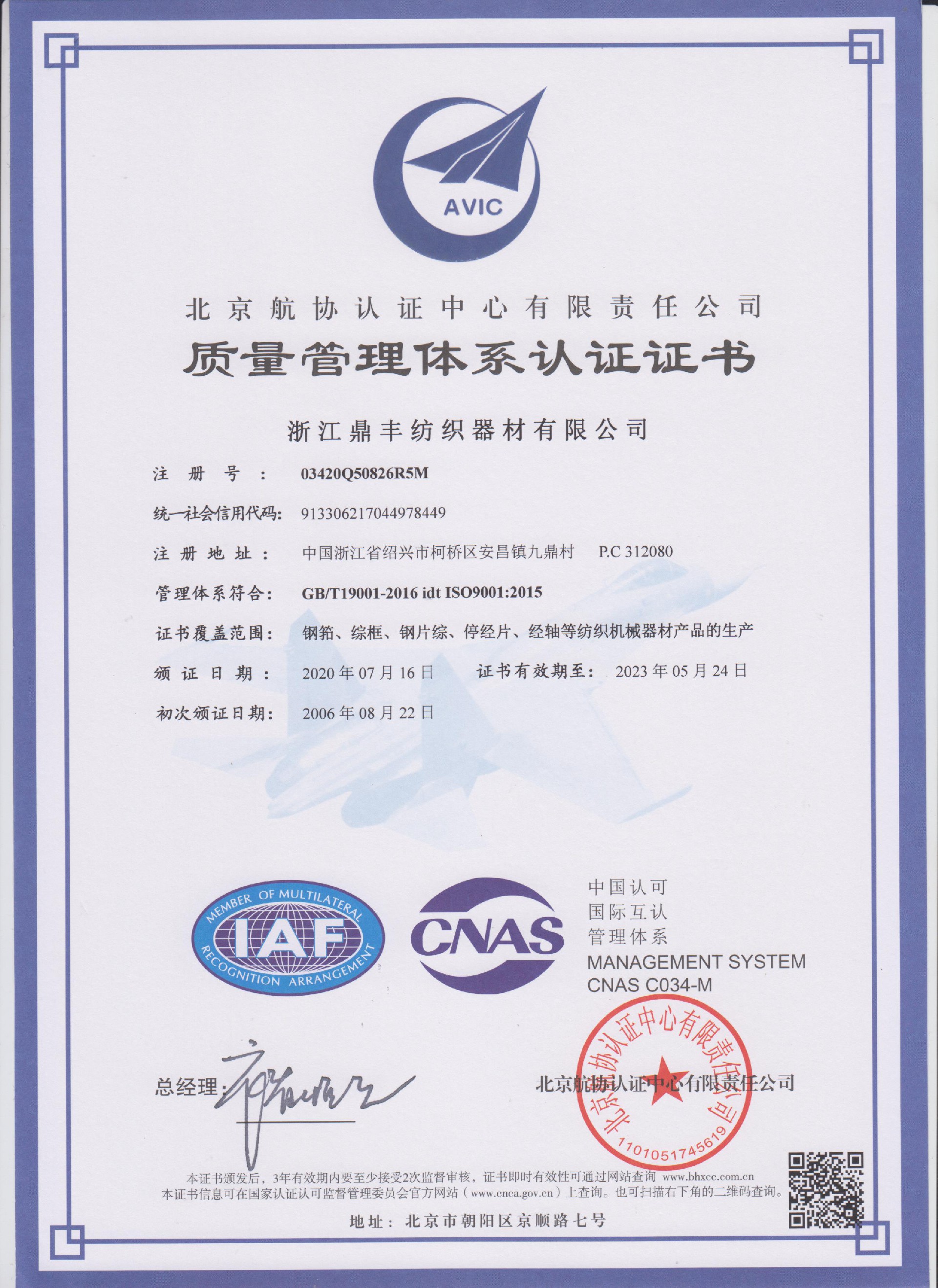 公司現(xiàn)有固定資產(chǎn)6000余萬元,員工300余人,現(xiàn)具有年產(chǎn)噴氣異型筘12萬米,劍桿筘32萬米,噴水筘5萬米,綜框20萬片,鋼片綜2億片,停經(jīng)片1.5億片, 織軸1.2萬套的生產(chǎn)能力。公司“越泉”商標(biāo)被評為“中國馳名商標(biāo)”。公司通過ISO9001 :2015國際質(zhì)量體系認證,ISO14001:2015國際環(huán)境管理體系認證,ISO45001:2018國際職業(yè)健康安全管理體系認證,噴氣織機用鋼筘和織機用鋁合金綜框獲得“浙江制造”品牌認證,公司擁有自營進出口權(quán),產(chǎn)品暢銷全國并遠銷印度、巴基斯坦、土耳其、埃及、哥倫比亞、意大利等國家和地區(qū)。